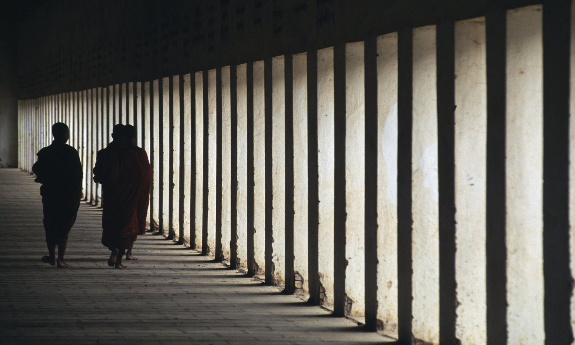 Religion - Monks, The access gallery to the Shwezigon pagoda, Myanmar